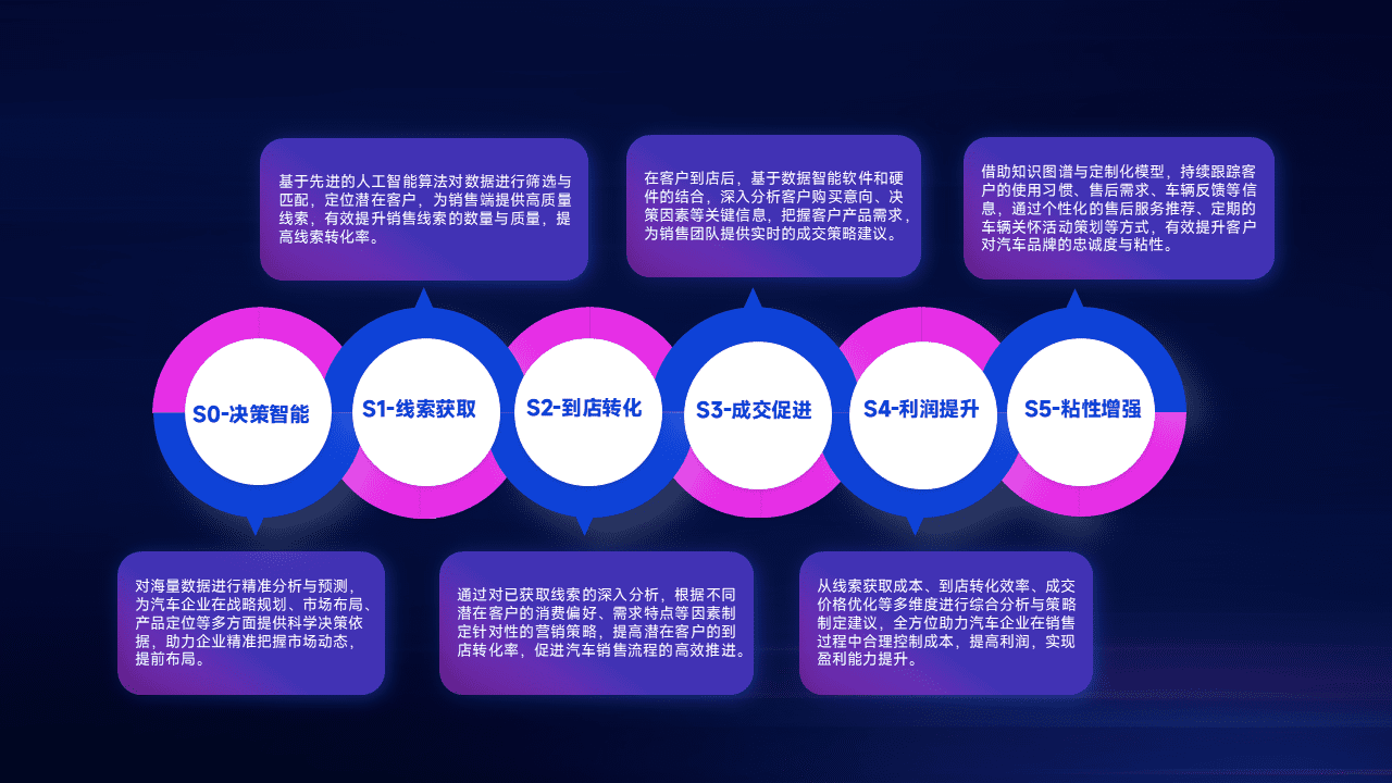 通过拓宽潜在客户来源、、、优化线索分配并提高到店转化率,,,,以增强销售效率。。。。同时,,,,利用线索数据不断优化分析模型,,,有效提升转化率,,,扩大营销影响力。。。